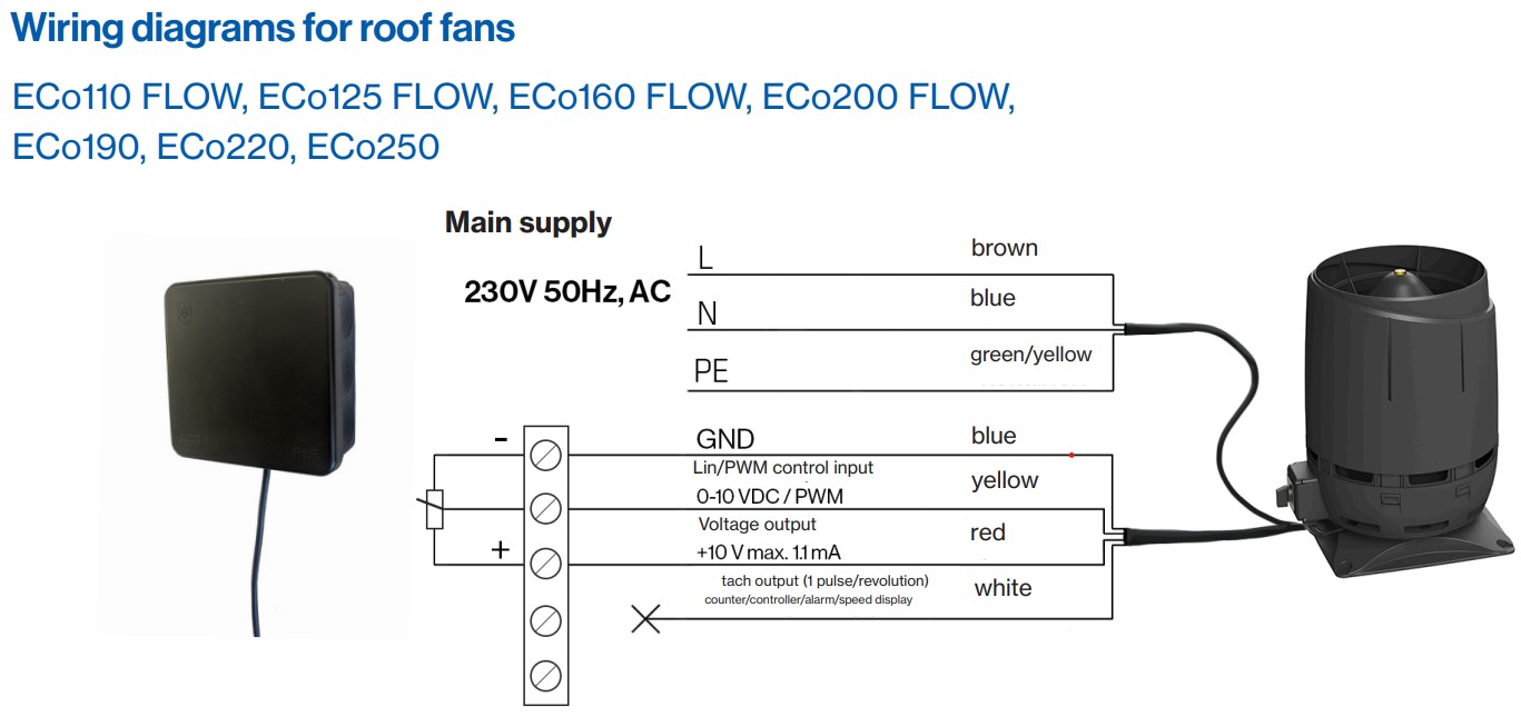 A VILPE ECo potenciométer lehetővé teszi az aktív használatban lévő tetőventilátor kézi vezérlését. A potenciométer a tetőventilátor motorjának fordulatszámát szabályozza, pl. raktárakban, liftterekben és lépcsőházakban.